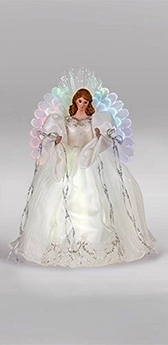 Ivory Angel 16 inch Plush Fabric Fiber Optic Christmas Tree Topper Decoration