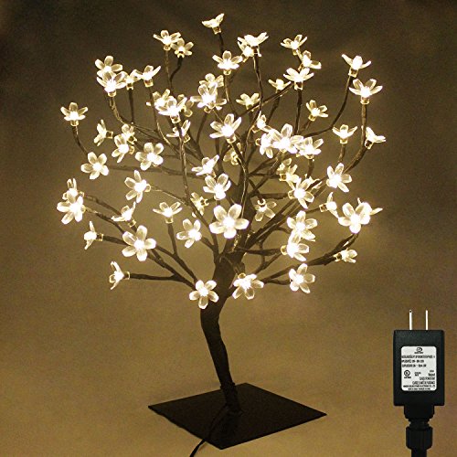 PMS 23inch 90 LEDs Cherry Blossom Desk Top Bonsai Tree Light with Low Voltage Transformer, UL Listed, Ideal for Christmas, party, wedding, ceremony, celebration Decoration (Warm White)