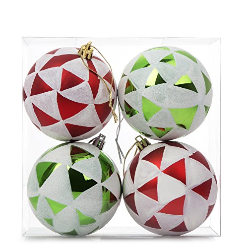 SANNO Christmas Ball Ornaments, Hand Painted Xmas Tree Balls Green/Red Shatterprooffor Holiday Wedding Party Decoration , 4 Pcs, 80mm/3.15"