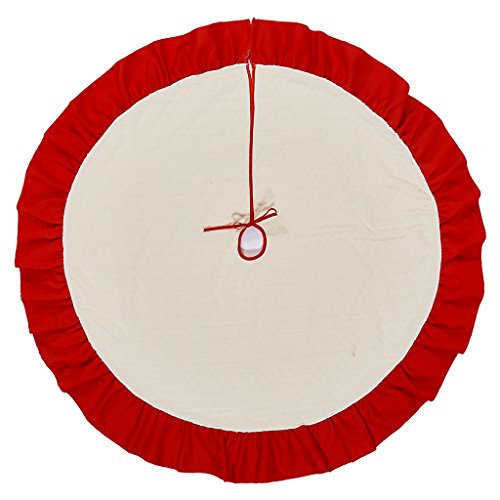Christmas Tree Skirt - 42 inch - Red and Beige Large Holiday Christmas Decorations Home Decor by Rorgio