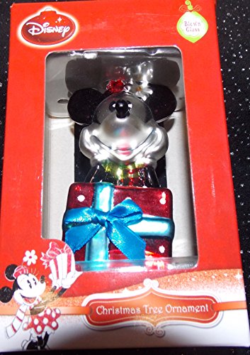 Disney Blown Glass Minnie Mouse with Red Christmas Present Christmas Tree Ornament