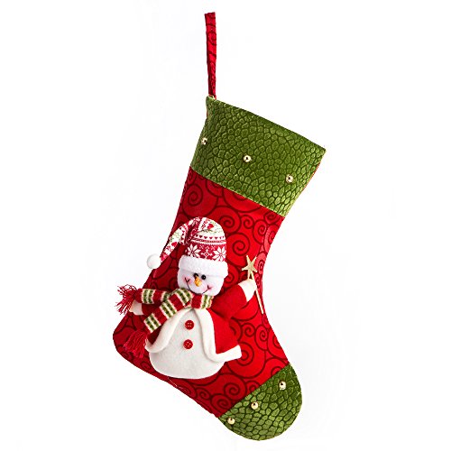 ipegtop 15" Felt Christmas Stocking, Red Holiday Tree Hanging Craft Socks Ornaments Decorations Snowman Stockings Green Trim