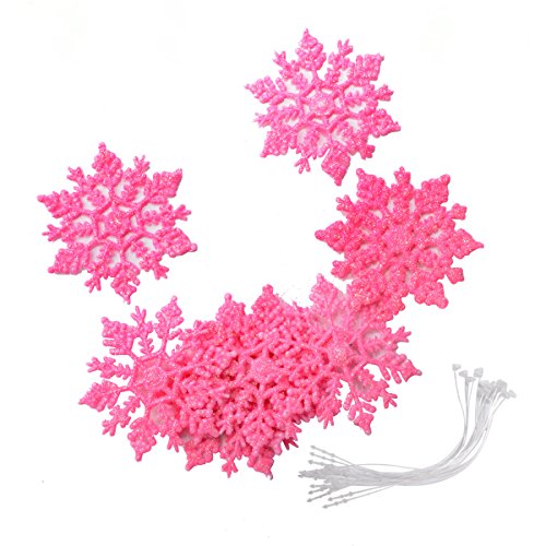 Saim Set of 12 Snowflake Christmas Ornaments Winter Wedding Favor Birthday Party Theme Decoration for Girls - Iridescent Pink Glitter - 4"Dia.