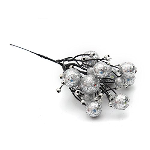 ZJCilected 8.7-Inch Glittery Artificial Berry Picks for Christmas Tree Wreath Garland Decorations(1 Piece, Silver)